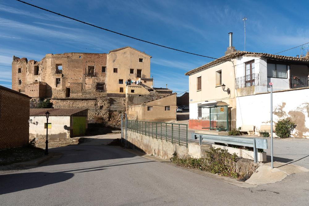 Una de sus edificaciones más destacables es el Castillo-Palacio de los Gurrea, con un bello patio renacentista del siglo XVI. Se encuentra en la vía romana que comunicaba Osca con Ilerda, por ello se cree que la muralla exterior tenga orígenes romanos. Posteriormente fue convertido en Palacio y después en viviendas.